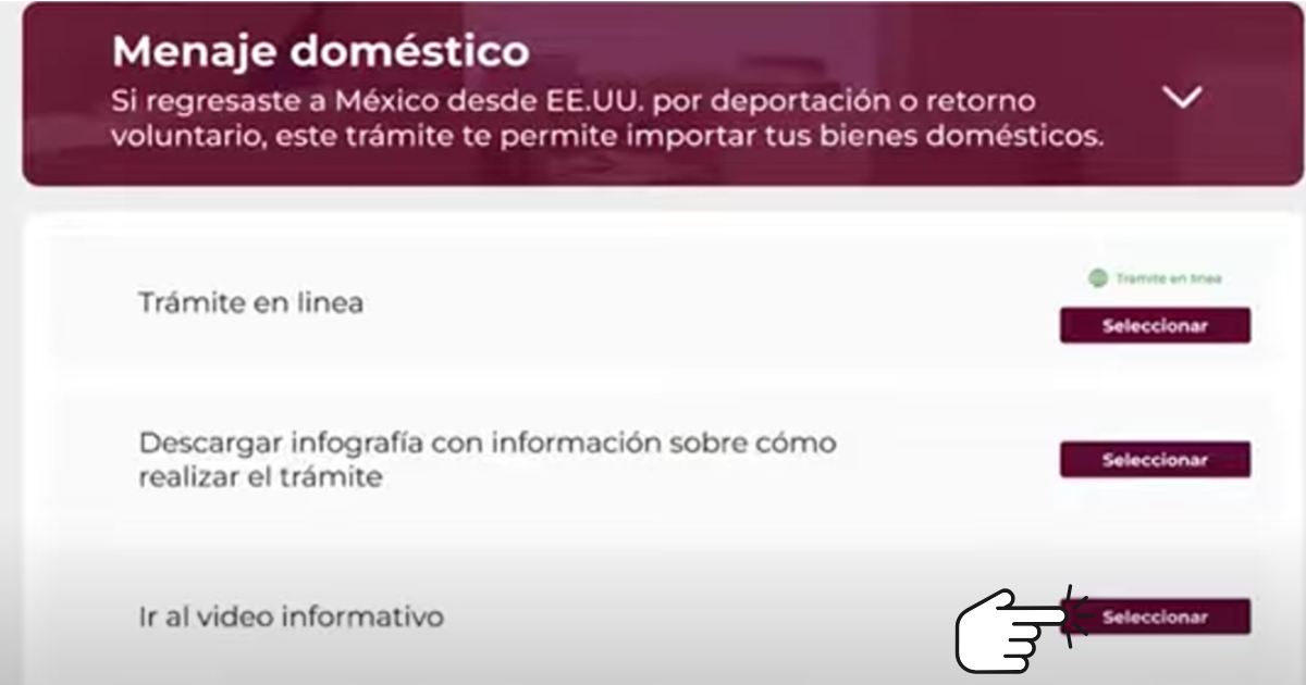 A partir de julio de 2025, el trámite del certificado de menaje de casa puede realizarse de dos maneras: En línea, a través del portal de MiConsulado: De forma presencial en la oficina consular: - Descarga y llena el formato de lista de menaje doméstico; Ambas modalidades son gratuitas y buscan facilitar el regreso de personas mexicanas que desean ingresar a México sus bienes personales acumulados en el extranjero. Haz clic en la imagen para ver el video informativo: