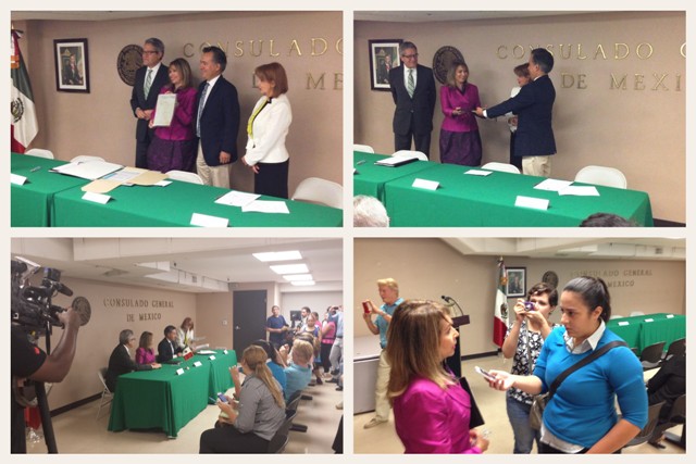 The event will include the participation of the Consul General of Mexico, Remedios Gomez Arnau and Mr. Sr. Joseph J. Bray, who will deliver the document; in the presence of Deputy Consul Francisco Javier Olavarria and Press and Cultural Affairs attaché, Martha Varela.