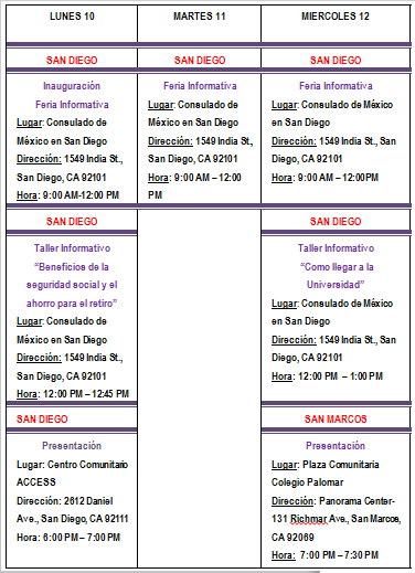 The Mexican community is invited to participate in the workshops, free of charge, that will be taking place at the Consulate General of Mexico in San Diego : 1549 India Street, San Diego, CA. 92101.
