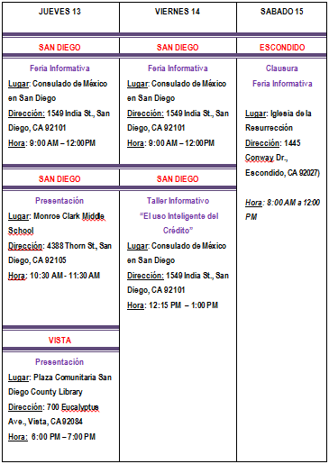 San Diego, CA.- March 4th, 2014. The Consulate General of Mexico, for the fourth consecutive year, will be hosting the Financial Education Week 2014 (SEF), taking place from March 10th-15th, under the slogan: