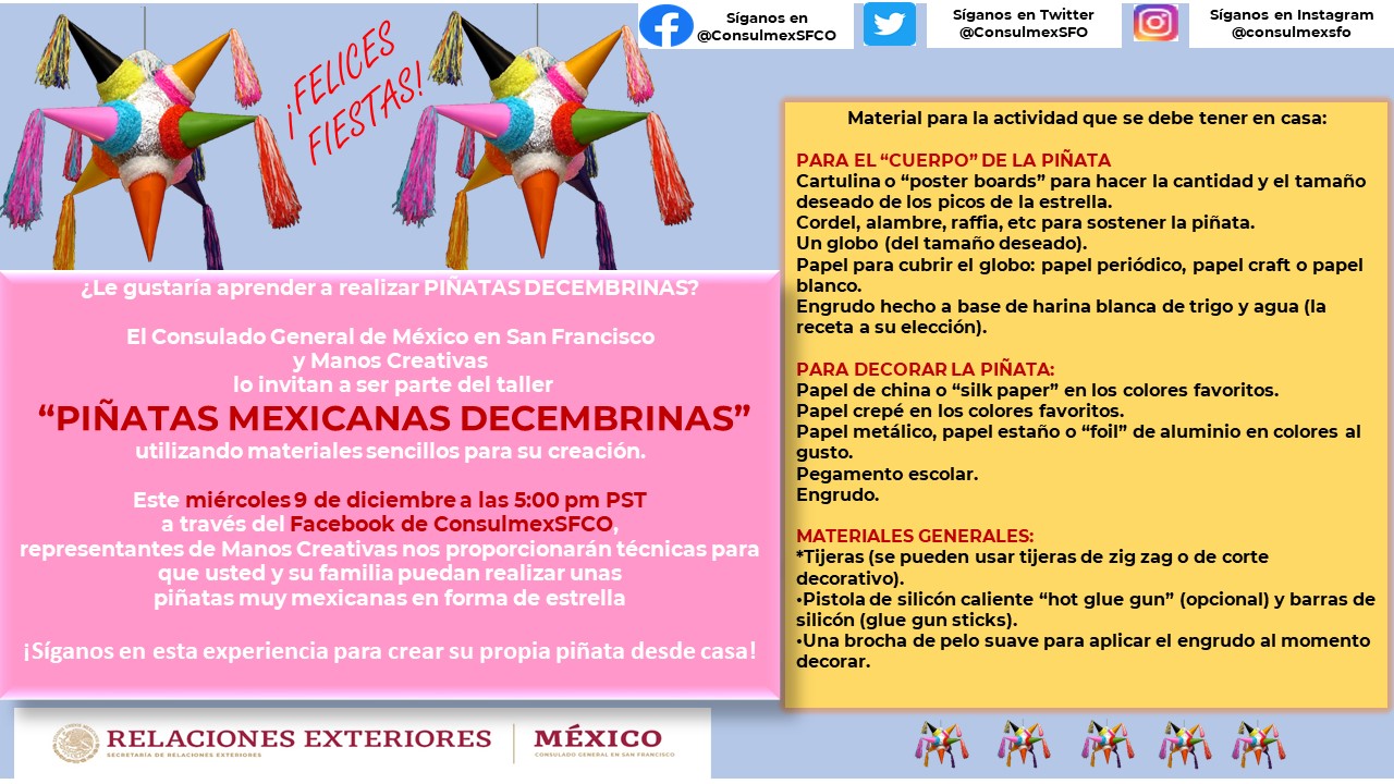Frida Kahlo Convocatoria Festivales Eventos organizados por otros Virtual Gallery Spanish Labor Trafficking Videos Isaac Davalos, Labor Trafficking, Spanish Jennifer Huang, This Adventure Called California, Spanish Eventos organizados por el Consulado Cine Mexicano CARNITAS CAFÉ EL TROMPETISTA POLVO DE ESTRELLAS Tradiciones decembrinas Detalles Última actualización: 07 Enero 2021