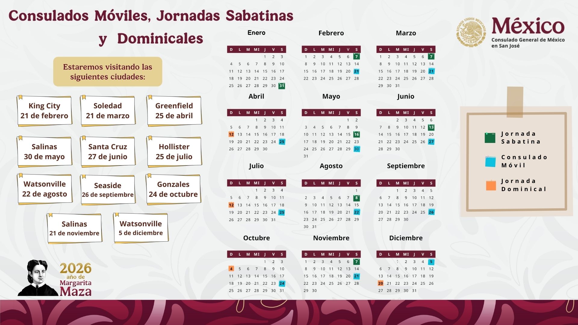 Calendario 2026 El Consulado Información Cónsul General Circunscripción Directorio Calendario Tarifas y formas de pago Detalles Última actualización: 23 Enero 2026