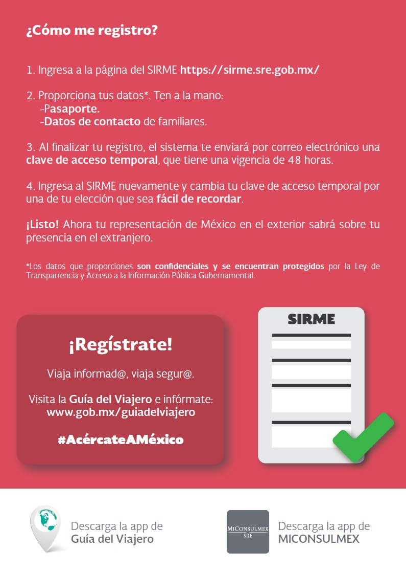 Sistema de Registro para Mexicanos en el Exterior (SIRME) Detalles Última actualización: 09 Febrero 2024