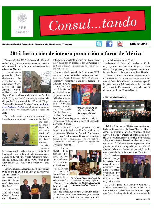 Si desea que el boletín mensual le llegue automáticamente a su e mail, regístrese en la sección “Suscríbete” de esta página web. |