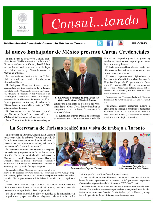 Reunión de Embajador y Cónsules en Canadá con Subsecretario Sergio Alcocer