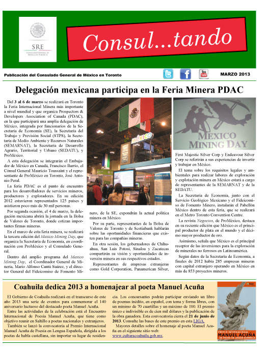 Delegación mexicana participó activamente en la convención y feria minera PDAC 2013