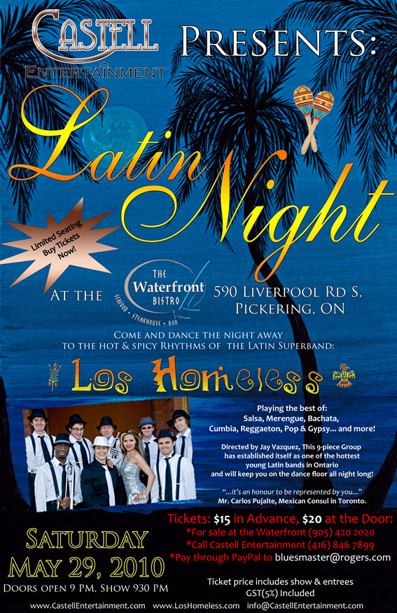 Castell Entertainment presenta: NOCHE LATINA en THE WATERFRONT BISTRO (590 Liverpool Rd. S. Pickering, Ontario).