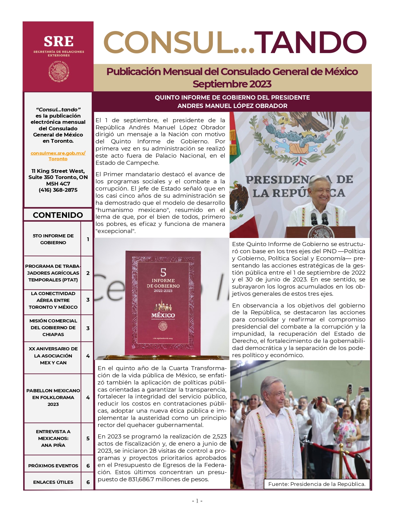La edición de septiembre de 2023 del boletín electrónico del Consulado General, ya se encuentra disponible.