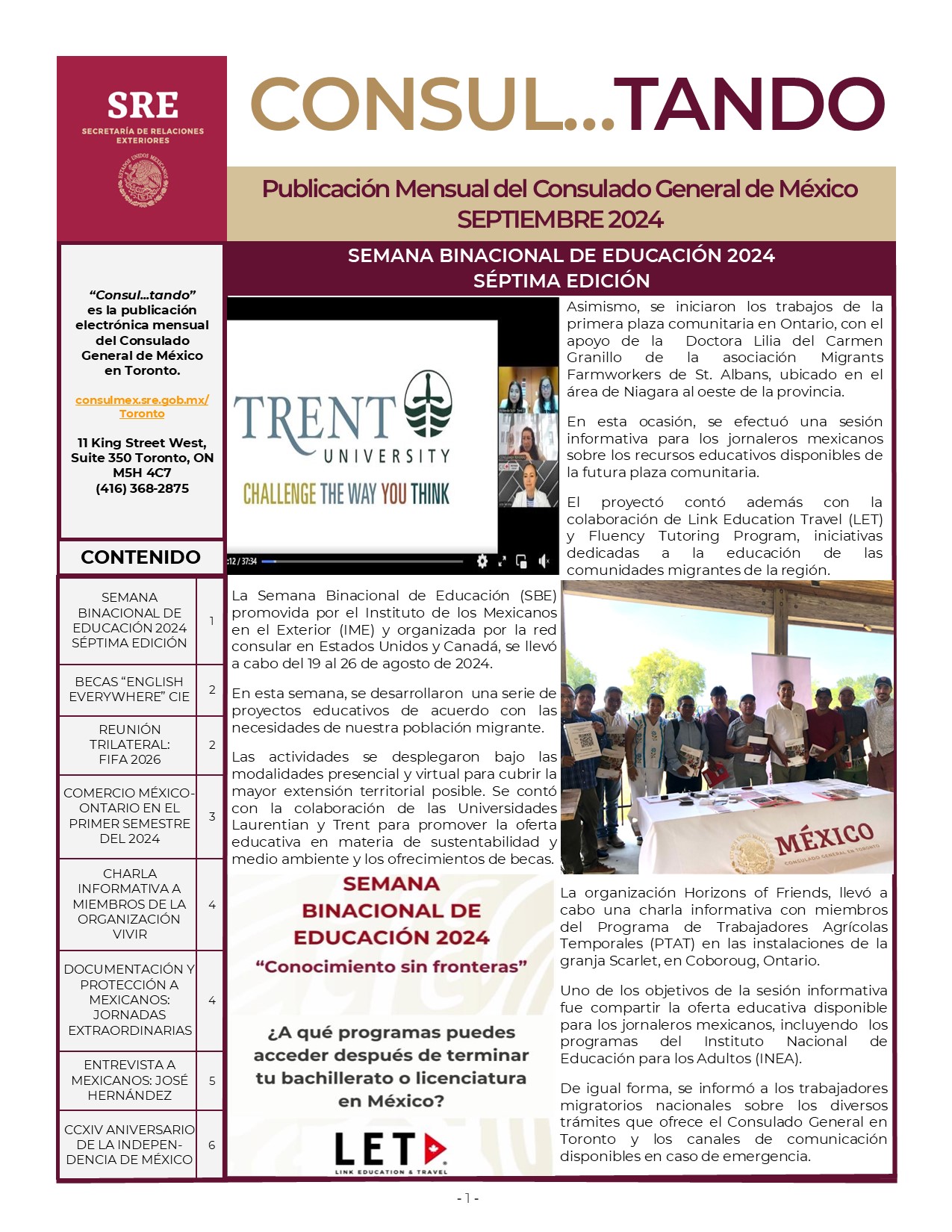 La edición de septiembre de 2024 del boletín electrónico del Consulado General, ya se encuentra disponible.