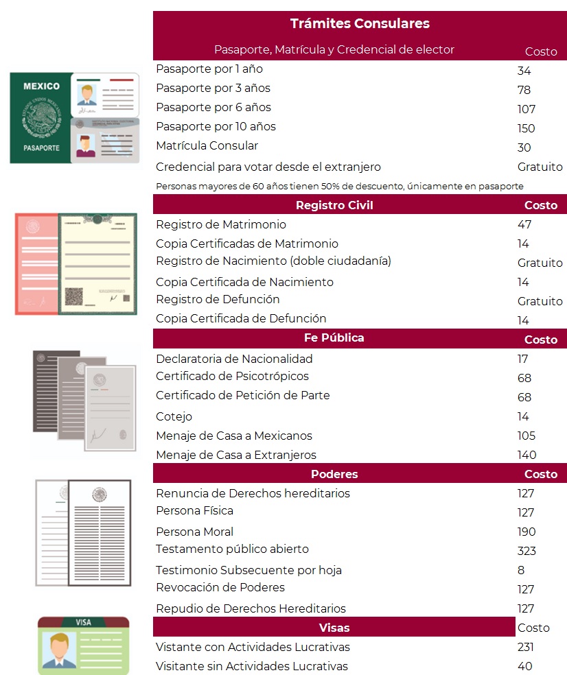 TARIFAS PARA TRÁMITES CONSULARES DURANTE EL 2020